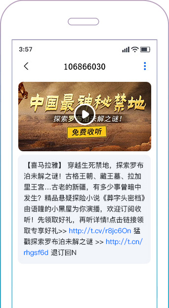 通過短信向用戶發(fā)送圖文音視頻等營銷內(nèi)容,內(nèi)容更豐富、展現(xiàn)更直觀、效果更顯著